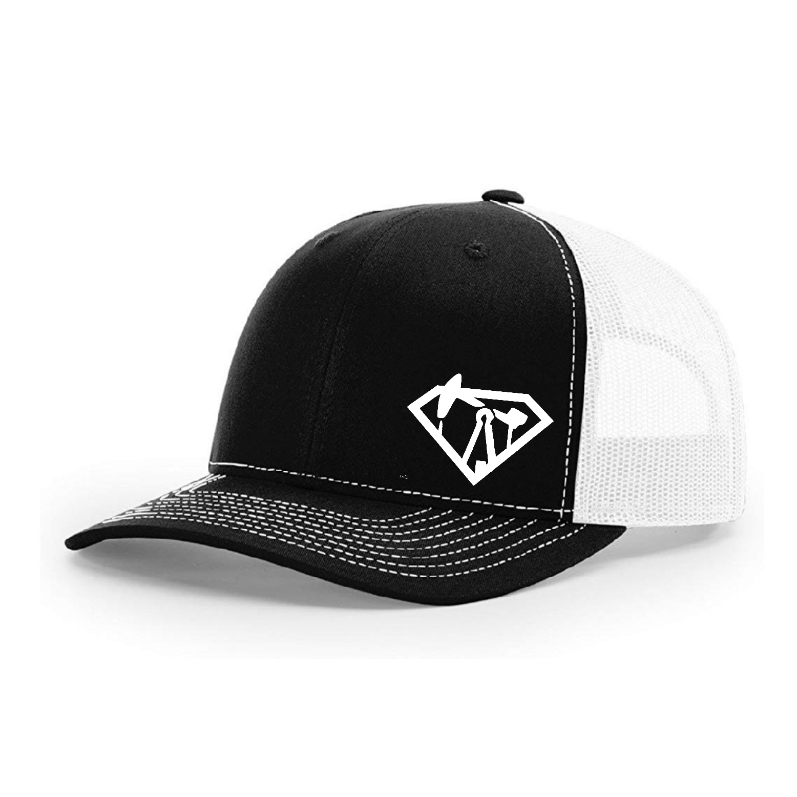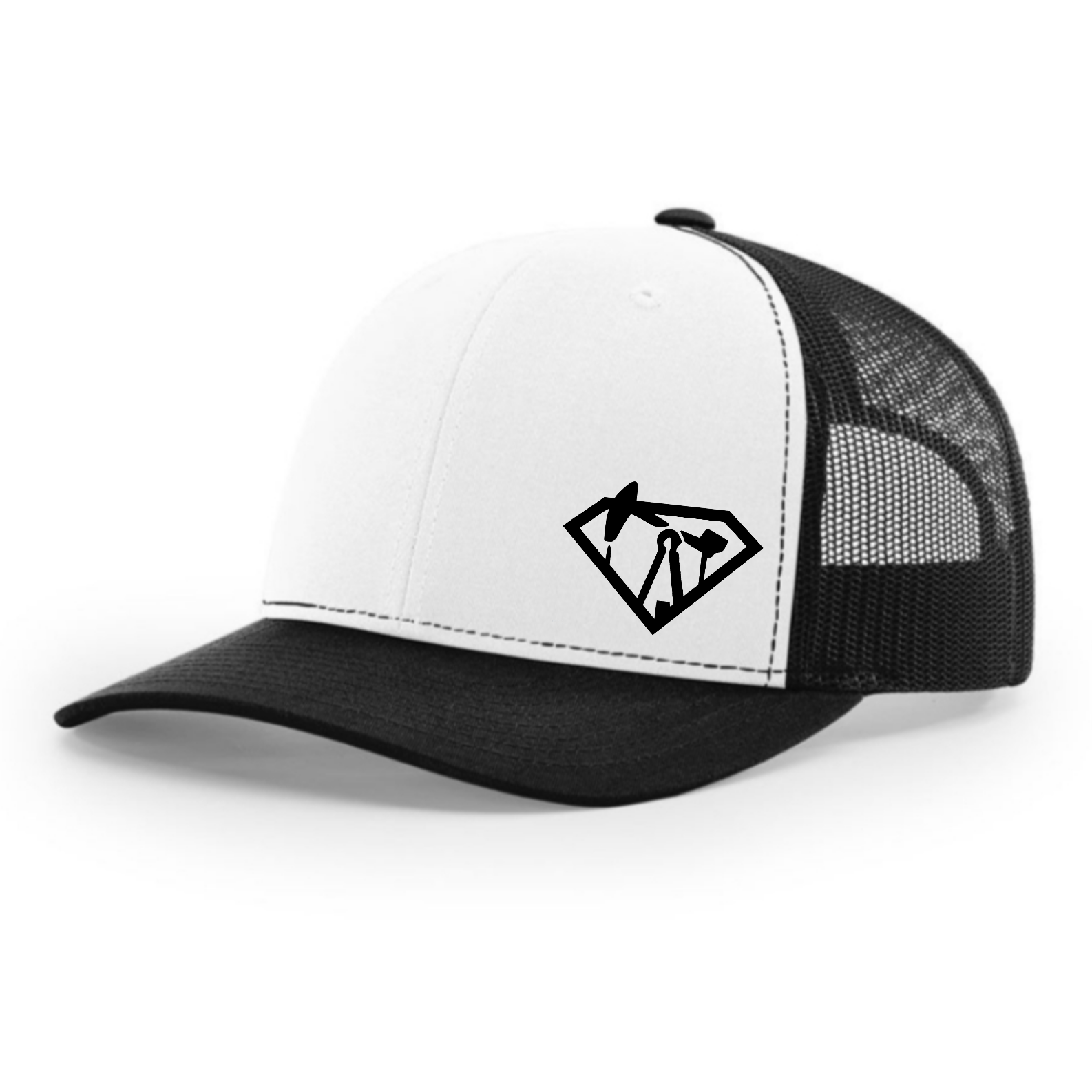 black white richardson 112 snap back cap with Oilfield Hero's decal