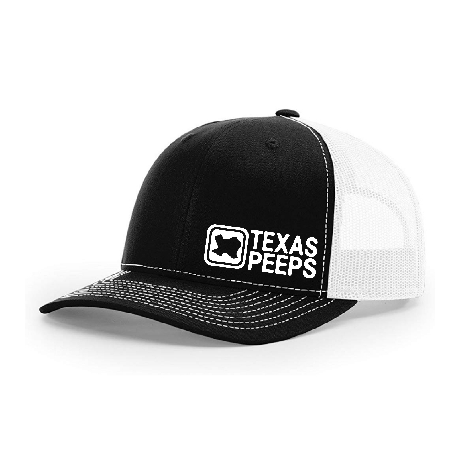 black/white richardson 112 snap back cap with white Texas Peeps Label decal