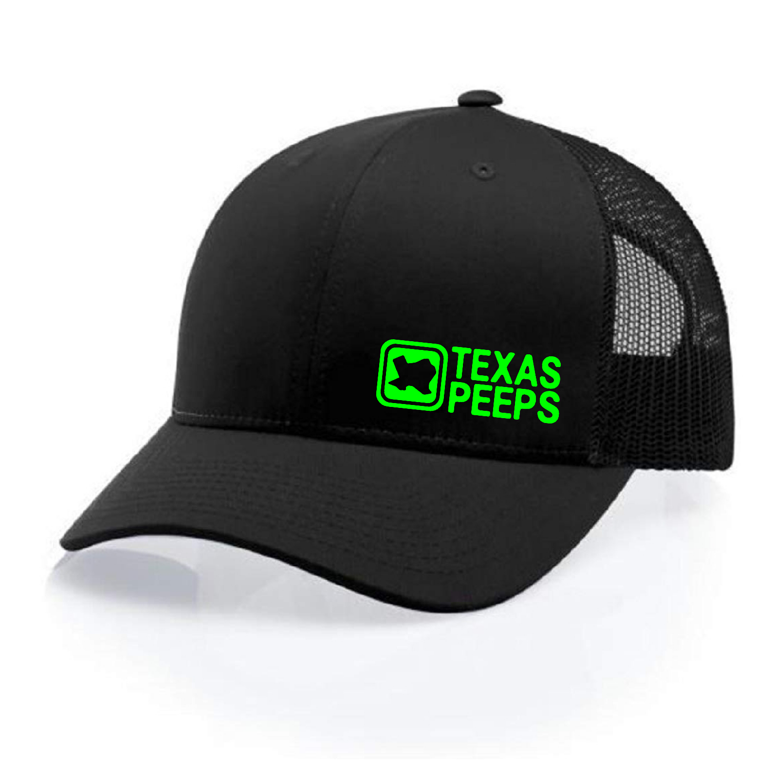 black richardson 112 snap back cap with lime Texas Peeps Label decal