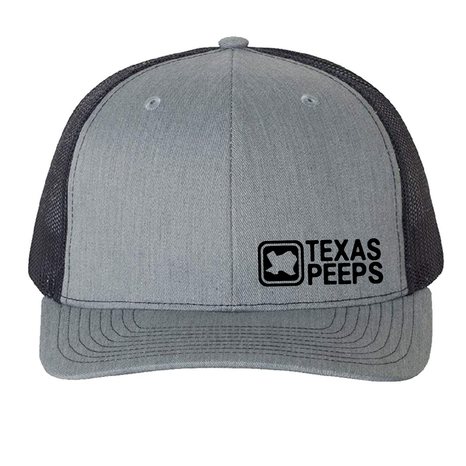 heather/black richardson 112 snap back cap with black Texas Peeps Label decal