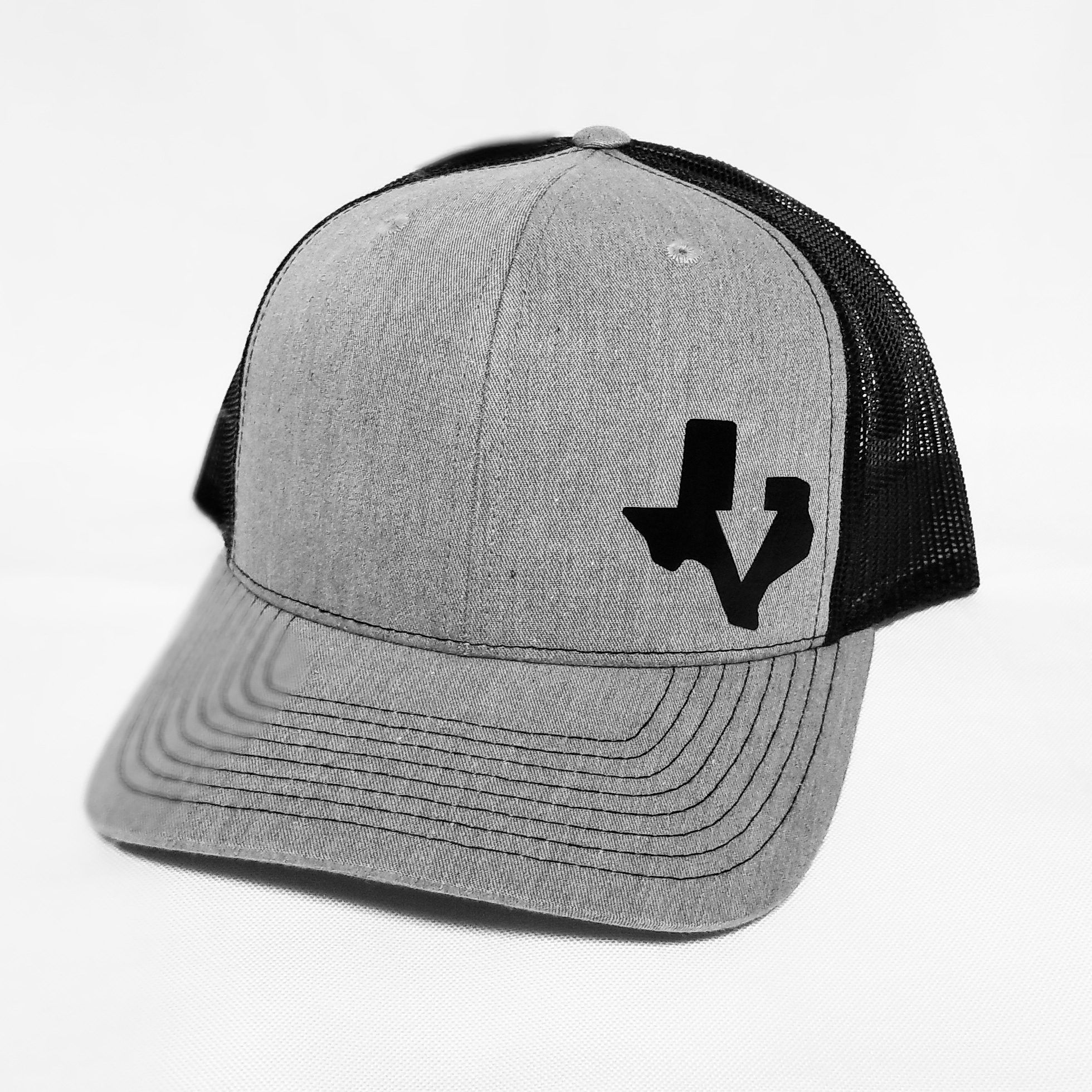 Heather Gray/Black Richardson 112 snap back cap with black Down In Texas design